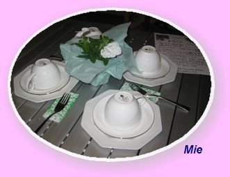 | テーブルセッティングが整いました。優しい色合いでとても素敵です。 | |
