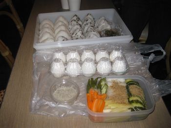 |  | お客さまも来られています。打ち合わせの後は、いつものおにぎりタイムです。rikaちゃんママのおいしいおつけもの、Miss Paddingtonさんはゆで卵とフランスはブルターニュの海の塩持参、そして、Mieはいつものおにぎりです。 |