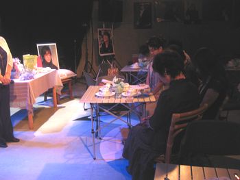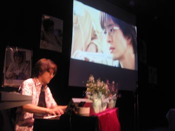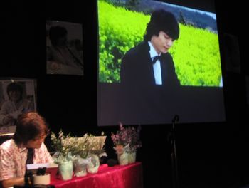| その後は、「冬のソナタ」のメイキングから、ヨンハさんを中心にまとめられた映像を見ながら深田ミニョンさんの演奏「イッチマ(忘れないで)」を聞きました。誰ともなく「サンヒョクのテーマ」といっている哀しい調べです。この曲を好きな人はとても多いです。そして、この曲を聴くと、哀しみのサンヒョクの姿が浮かんできます。 |  |