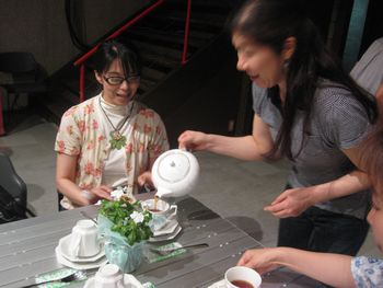 |  | 今日の受付を頑張ってくれたkazueさんです。rikaちゃんが紅茶をサーブします。今日の紅茶はSri LankaのQuality UVAです。 |