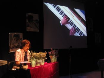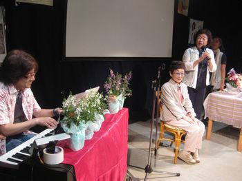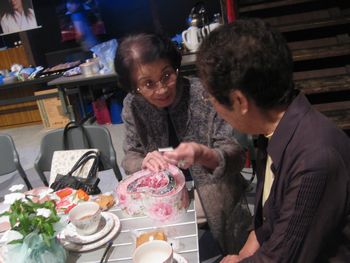 | そこでMiss Paddingtonさんが、千津子さんを招きました。我らがグループの誇りである千津子さんのちょっと早い誕生祝いを皆さんでしましょう。 ヨンジュンさんより、1ヶ月早いお誕生日の千津子さんです。今年7月29日に卒寿(90才)を迎えられます。 |  |