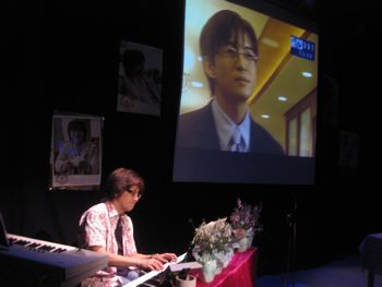 | いよいよ、「第35回冬ソナチャリティライブ」が始まりました。今日の第一部は、先日6月30日に亡くなられたドラマ「冬のソナタ」でチュンサンの同級生として出演したパク・ヨンハさんの追悼ライブとしたいと思います。 |  |