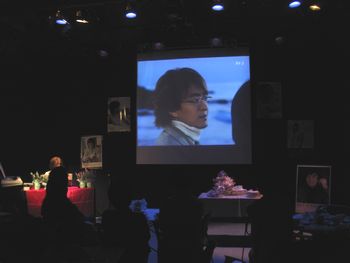 | パク・ヨンハさんのご冥福をお祈りして会場の皆さんで、黙祷を捧げました。 |  |