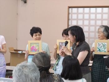 |  | 大分の梶川さんに先生が聞かれています。どうでしたか?始めは本当にどうすれば良いのか判らなかったけれど、何とか出来そうでうれしいです。まだ未完成なので、帰って仕上げます。 |