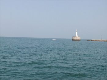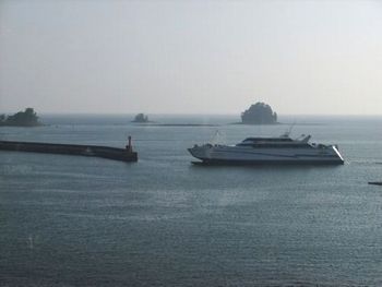 |  | 大村港の防波堤を出ると、穏やかな海が続きました。 |