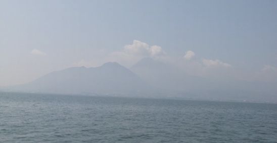 |  遠くに薄っすらと、島原半島の山が見えてきました。左が眉山、右が雲仙普賢岳。 普賢岳の噴火それに伴う火砕流被害はまだまだ記憶に新しいです。 (1990年11月に突然爆発し、1991年6月には大火砕流が発生し犠牲者を出した。) | |