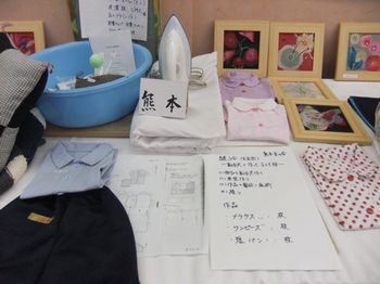 | 熊本友の会は、若い人に伝えた洗濯の基礎の用具、また生活団のお母さんたちが作ったブラウスや体操パンツ。 |  |