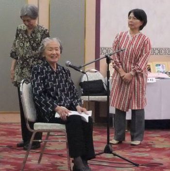 |  | まもなく96歳になられる平野さんですが、背筋を伸ばして座られ、長いお話を原稿を見ることなくきっぱりと話してくださいました。 いつからでも新しくなれます、目に見えることから見えないものに及ぼしていくのが順序です。といつも前を向いて歩んでこられた様子を話してくださいました。 |