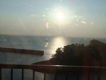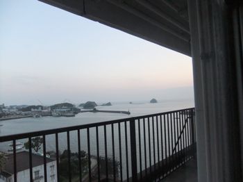 | 朝は温泉に初めて行きました。そこで、日の出を見ることが出来ました。部屋に帰りカメラを持って出て、廊下で海を写しましたが、もうだいぶん高くに昇っていました。 |  |