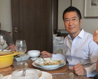 | 少し遅れて登場の料理やケーキの達人・HAYASEさんです。以前もここで、HAYASEさん作成のおいしいケーキをご馳走になりました。カリーを味わいながら、この不思議な味は何だろう?と探究心旺盛です。 |  |