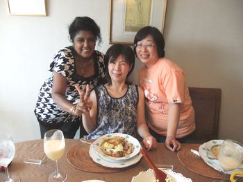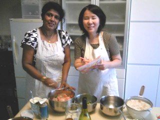 |  | スリランカのお友達、スニータさんと、鈴木先生です。本場のカリーを伝授、私たちは、お相伴に預かります。スニータさんの本業は旅行会社経営、こうしてお友達の要望に応えて、お料理を紹介しては、本場の香辛料や小物なども、持ってきて下さいます。 |