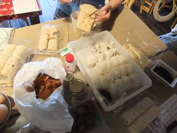 | 打ち合わせの後は、いつものおにぎりタイムです。文文ちゃんたちが、心を込めて作ってきてくださった、春巻き、タカちゃんの差し入れ鶏の唐揚げ、砂肝、サっチャンからゆで卵、Miss Paddingtonさんのおいしい浪速の昆布の佃煮は大阪家族のINAちゃんが送ってくださったものです。Mieはいつものおにぎりです。 | ![]() |