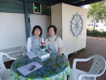 | ヨンジュンさん関連グッズ販売担当はいつもkuroちゃんです。kazueさんもお手伝いで心強いです。 | ![]() |