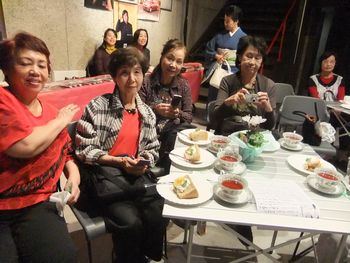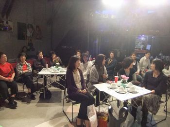 | 今日の紅茶、最初は「アジアンドリーム、続いてスリランカからの紅茶ヌワラエリアです。今回はおしゃべりタイムをたっぷり取りました。皆さん、テーブルの方とケーキと紅茶を楽しみながら、お話をたくさんなさっています。 | ![]() |