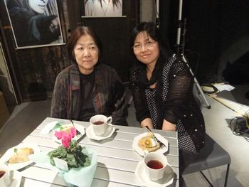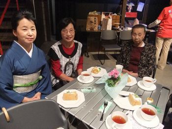 | 津久見から駆けつけて下さる、池野谷さんたちも紅茶にケーキを楽しまれています。 | ![]() |