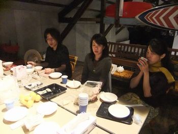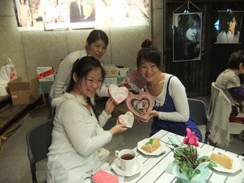 そこへ可愛いお客さまです。中国からの研修生の解ちゃん、文文ちゃん、董麗(トゥ・レィ)ちゃんです。hiromiちゃんがお連れしました。 |