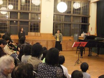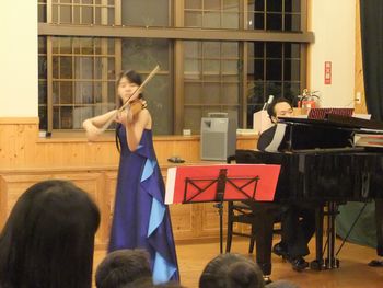 |  | 第一部では日本の歌メドレー演奏、最前列の小さな子どもたちも一生懸命に聞いていた。 続いてチャルダッシュ(モンティ) 誰も寝てはならぬ(プッチーニ) ハンガリー舞曲(ブラームス) |