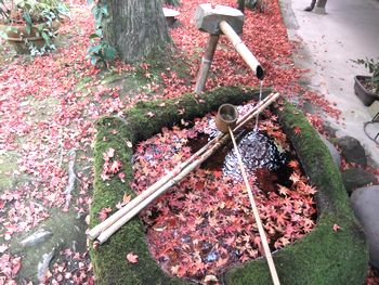 苔むした蹲にも、紅葉の落ち葉が一杯で、何ともいえない風情です。 |