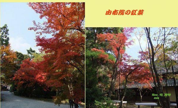 | 由布院はすっかり秋も深まり、楓が真っ赤に紅葉していました。ウィークディにも関わらず、とても多くの人たちが観光に訪れています。 | ![]() |