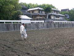 「暑いですね」と声を掛けると、田んぼを上がってきて