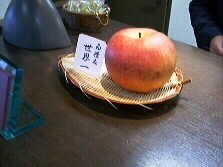 10月24日諏訪の特産編 旅館の真下は諏訪湖です。 霧に霞んでいます。外へ出ました、ブルブル寒いです。 旅館のフロントにおいてあった、大きなリンゴ、「世界一」です。 子供の顔くらいありますよ。。 売店で見つけたものです。 上の張り紙が読めますか?「信州限定商品」って書いてあります。