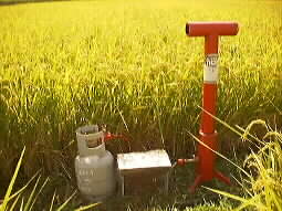 今の大敵はスズメです。こんなスズメ脅しが設置してありました。