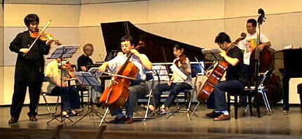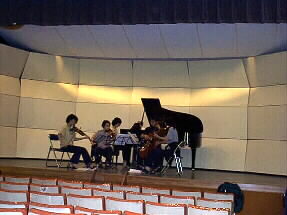 朝、10時前からもう会場の公民館ではリハーサルが始まっています。演奏家の皆さんも今夜の「ファミリーコンサート・前夜祭」では音楽祭オリジナルのTシャツで演奏をして下さいます。お客さまも、きっと寛いで楽しんで下さるでしょう、今夜は無料の前夜祭です。 |