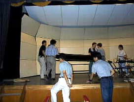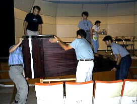 ![]() 今夜の演奏会用にチェンバロが男性ボランテイアスタッフによって慎重に舞台に運び込まれます。 | |