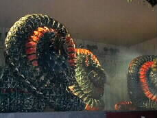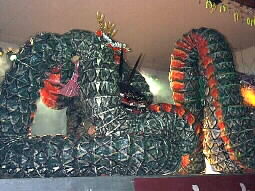 ![]() さあ、大蛇がやってきました。目はランランと光り、口から煙を吐いて威勢良く登場です。 |