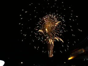 ![]() お神楽の後は、入り口でもらったうちわの番号の抽選発表、庄内の名産、ナシが賞品でしたが、残念ながら我が家は2本のうちわとも、当たりませんでした。最後は美しい花火で締めくくり。楽しい美しい夏のフェステイバルでした。 |