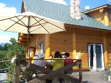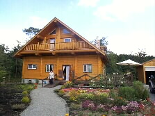 |  | 友人の家です。カナダ産のログハウス。可愛いお花やハーブがたくさん育っていてまるでおとぎばなしの家のようです。この家は建って丁度1年、リタイヤーされたご主人と二人でIターンというのでしょうか、久住の住人になられました。 |
