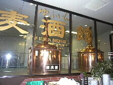 |   | 席待ちの人の長い行列が出来ています。 私たちは席に着くことは諦めて、社長の小野さんの案内で館内見学をさせて頂きました。 ビール醸造所ブルワリーをガラス越しに見ることが出来ます。 仕込み釜の赤い輝き、実用的な形、それはそのまま、機能美となって 見る者を幸せな気分にしてくれます。 |