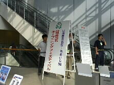昨夜は本当に台風10号で心配しましたが、今朝は台風一過の素晴らしい天気になって、大分国民文化祭がいよいよ始まります。私もコアラとハイパー研の電子マネーの実験のお手伝いをするべく、大分にやってきました。途中の「オアシスひろば21」では係りの人が看板の準備などで忙しくしていました。 | |