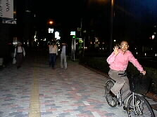 もうすっかり夜です。タケちゃんは自転車でした。明日からの別府での実験も頑張りましょう、楽しみましょう。皆さんも、電子マネーを体験しにいらして下さい。 | |