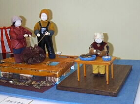 国民文化祭を彩る人形展を見に行きました。お友達の鈴木真寿寛さんがお世話をなさっている木目込み人形の会の展示です。テーマは「21世紀へ文化をおこす豊の風」ということで大分県の一村一品一文化を人形で現してありました。その中のいくつかを写しました。