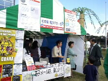 今日のコアラブースはたくさんのネットワーカーが集まってきて賑やかです。先日のテレビ取材で電子マネーのことが放映されたこともあってたくさんの方が次々と買いに来られます。別府会場に詰めっきりで応対をしている草本さん、今日も元気です。 |