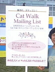 Cat Walkの紹介パネルです。女性だけのメーリングリストです。 子育てのことからSOHOのことまで、 おいしいもの見つけた! こんなお料理作ってます、ってことなども、話してますよ。友成さんが紹介をしました。 |