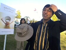 心配したお天気も上々、今日はゆっくりお客様で国民文化祭を楽しもうとコアラのお友達の宮瀬さんの車に乗せてもらって主人と一緒に別府会場へ行きました。昨日からインポートバザールも開かれていてたくさんの人で賑わっていました。私たちはワインの試飲を楽しみました。 |
