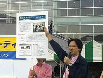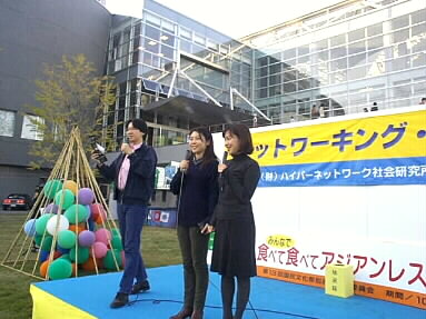 さあ、いよいよ「ネットワーカーズ・パーテイ」が森さんの司会で始まりました。天神コアラの向井さん、すみちゃんもお手伝いをしています。 |
