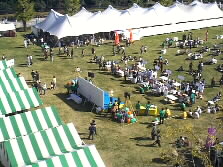 もうすぐ11月が来るということが信じられないようなまぶしい太陽の照り付ける日曜日、たくさんの人で連日賑わった「国民文化祭大分98」も最後の日となりました。今日も別府ビーコン芝生広場は賑わっています。 |