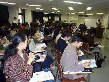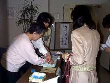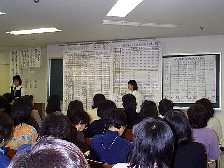 |  | いよいよ、受付にお客様が見えました。エレベーターが着くたびにたくさんのお客様が来られます。家計簿をつけて生活しましょうということで毎年、この時期に開いている家事家計講習会です。不透明な日本経済と言われて久しい今の時代、家計簿に関心を持つ方が増えています。 |