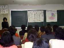 |  | 11月14日の土曜日も同じ会場で家事家計講習会を開きました。最近はお仕事を持つ主婦が多いので、土曜日にも開くようにしましたところ、男性の方も熱心に聞いて下さってとても良かったなと思いました。 |