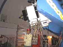 |    階段をくるくる登って一番大きな望遠鏡を見学しました。しし座流星群が見えるという時には一晩中公開されているそうです。きっと多くの天文ファンで賑わうことでしょう。この望遠鏡でのぞく天体はどんな素敵なショウーを展開してくれるのでしょうか。大変興味があります。 | |