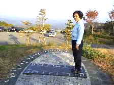 |   | これは芝生の庭にあった、人間時計です。私の建っている長方形の台座に日付が刻んであります。私は今日の日付の上に立っています。私の影の落ちた所の目盛りを読むと4時40分、私の腕時計の時間とピッタリでした。フーーン不思議です。 |
