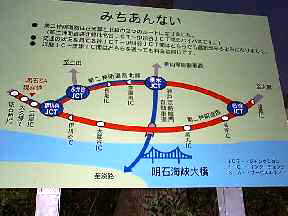 |    夜、9時のダイヤモンドフェリーに乗って大分へ帰ることになりました。夕方、4時半、車で両親の家を出発しました。途中、明石のパーキングエリアに寄りました。神戸までは第二神明道路、阪神高速などいろいろと道路が走っています。フェリーは六甲アイランドから出ますが、その辺りは阪神大震災では大変な被害のあった所です。 | |