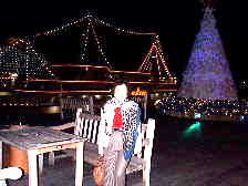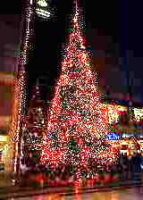 |      まだ時間があったので、ハーバーランドへ行きました。素敵な総合ビル、キャナルガーデンです。オシャレなお店が一杯あります。真っ赤な飾り付けの大きなツリーやリースがもうクリスマスの雰囲気を漂わせています。高浜岸壁では、真っ白なツリーに見送られて観光船が今しも出港する所でした。冷たい北風の吹き出した夜ですが、若い人で賑わっています。震災からこんなに美しく復興した神戸、うれしくて拍手です。 | |