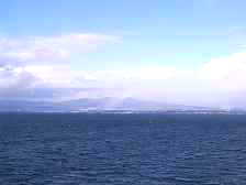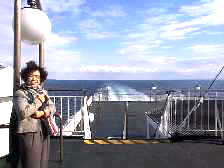 | 18日は大変長い、そして変わった一日でした。早朝は流星群を見るためにグランドに寝転んでいました。そして公園を散歩したり、神戸を見学したり、最後は船の中で寝るという一日でした。    翌19日の朝はきれいに晴れ上がっていましたが、寒い寒い甲板です。少し船は揺れました。 | |