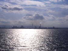 |    旅の終わりを祝福するがごとく、虹がかかっています。わかりますか?国東半島でしょうか。中央の山を斜めに切るように虹が走っています。右の写真は主人が長い間勤めていた新日鉄の溶鉱炉です。今回の帰省は、両親は元気かなっていうことで行ったのですが、本当の目的は主人の退職の報告に行ったのでした。 | |