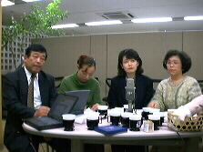 |  | 26日夜8時から9時までのOBSラジオ「カフェ・コアラマルチメデイア店」のプログラムは、1,ゆふいんネットの方々をお連れしました・・・永野レポーター、2,サン・ノゼの吉本秀子さん。という内容。そこで、湯布院からはわざわざ山水館会長の小野正文さんと湯布院の主婦・古庄由紀さんが駆けつけて下さった。所用で日本に来られた吉本さんも、放送の始まる直前にスタジオ到着。吉本さんはジャーナリストとして活躍なさっている方で、コアラでもお馴染みの方、私たちもアメリカ旅行でお世話になった方です。今は、緊張して放送開始を待っている所です。 |