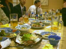 |    番組終了後、コアラ事務局長の尾野さんはじめ皆さんと一緒に食べに行きました。吉本さんは久しぶりの日本、大分を味わって頂こうと、和食のお店に行きました。地鶏、お豆腐、たこ、子フグ、いろいろおしゃべりと共に楽しみました。 | |